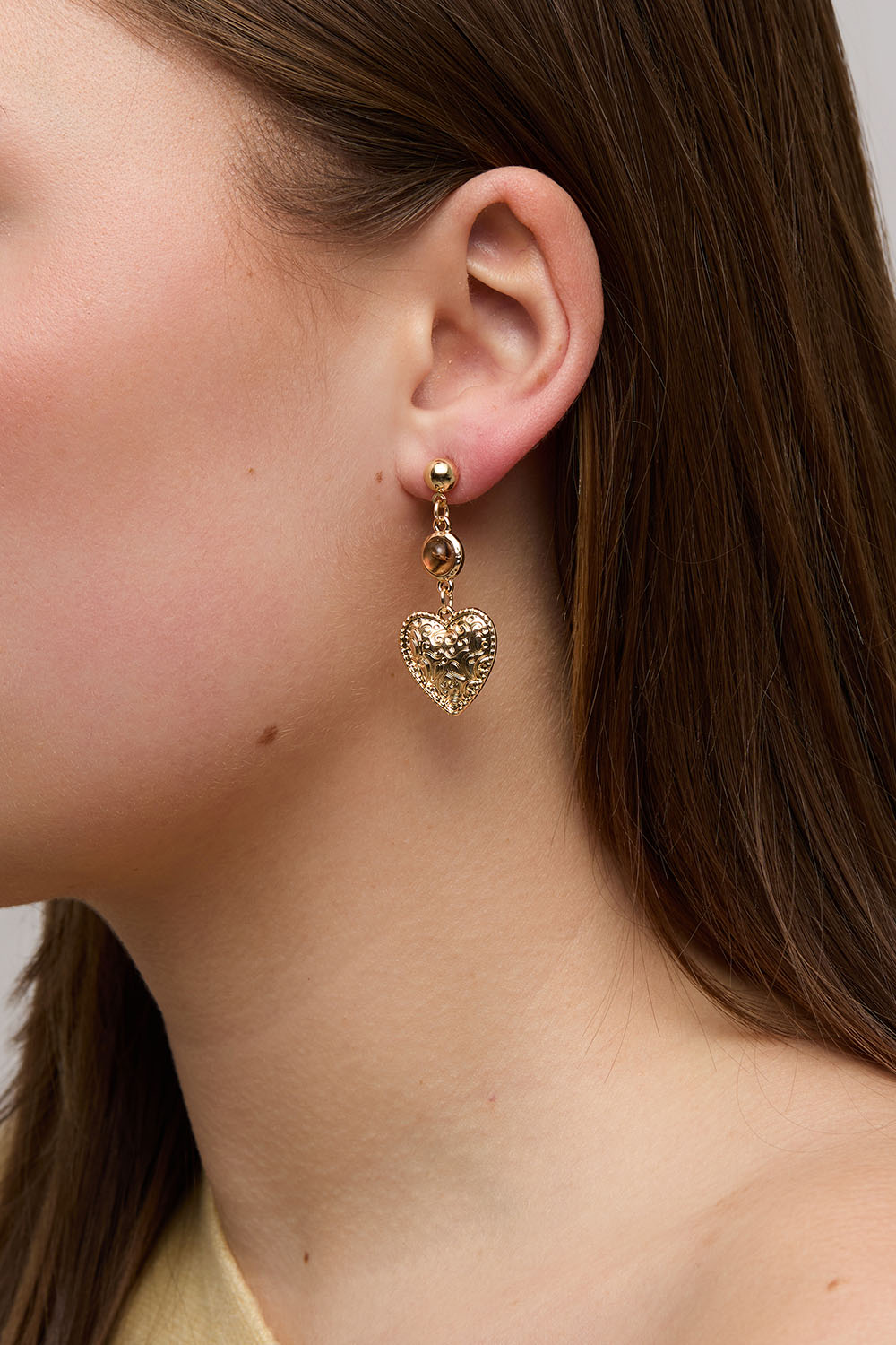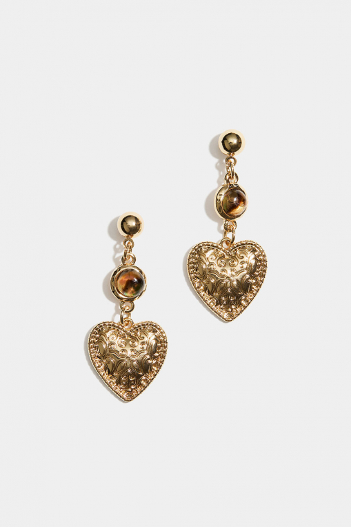 Örhängen med mönstrade hjärtan och bruna pärlor