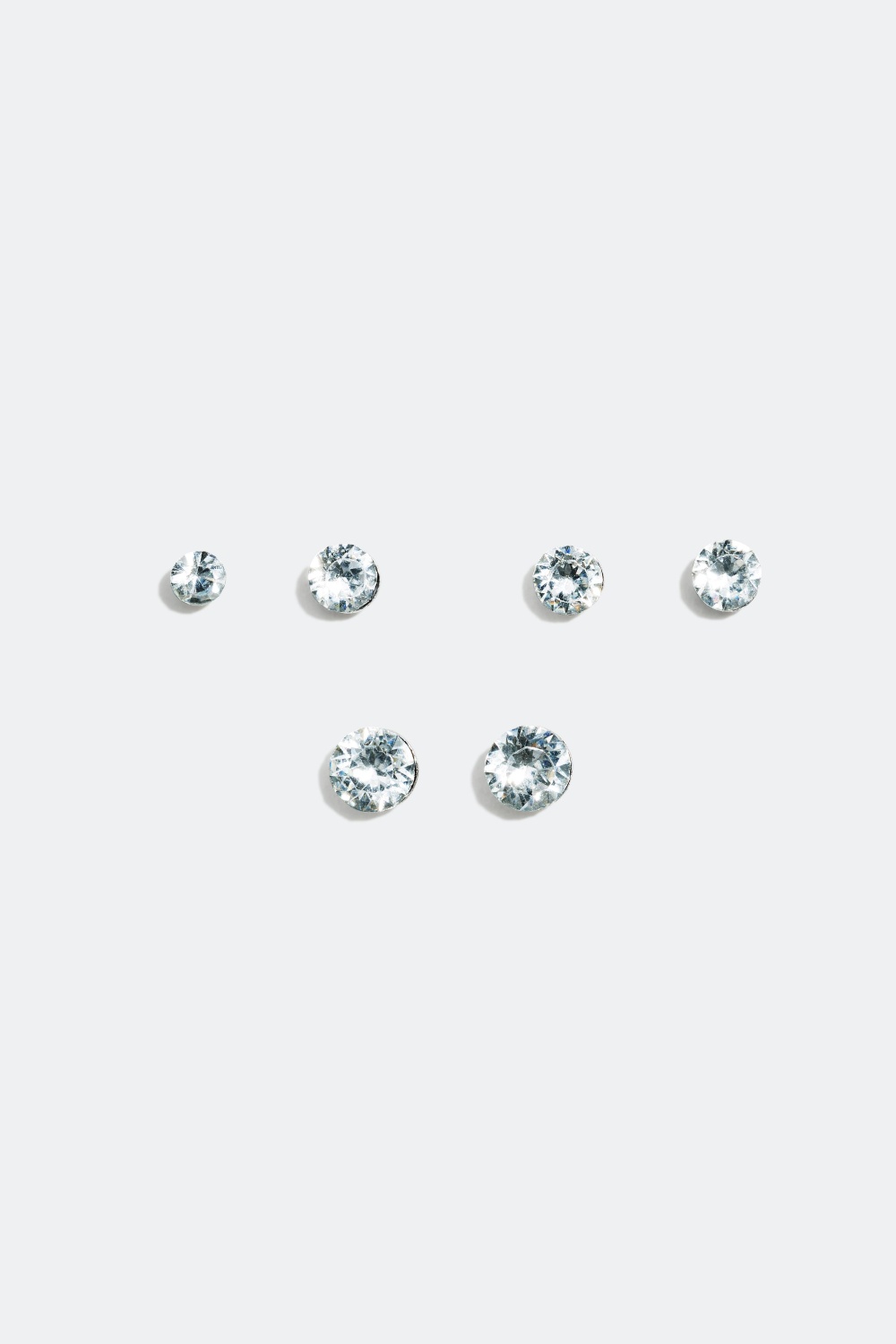 Klassiska örhängen i 3-pack med vita glasstenar. Tre par gnistrande örhängen i olika storlek, ett par för varje tillfälle. De stora örhängena passar utmärkt till fest och kombineras enkelt med armband och halsband.