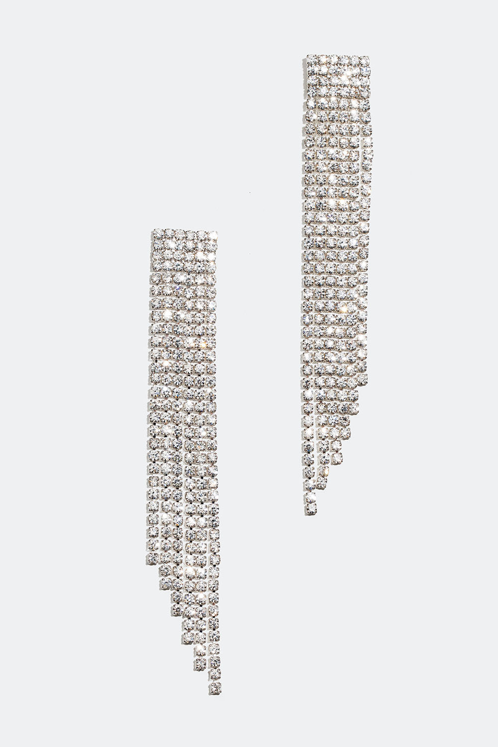 Långa örhängen med sex hängande strasslänkar dekorerade med glasstenar i olika längder. Perfekt strassmycke till festliga tillfällen.