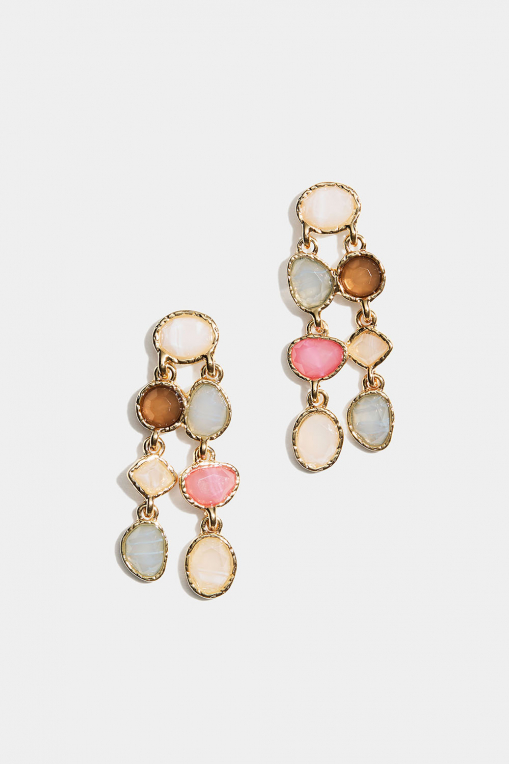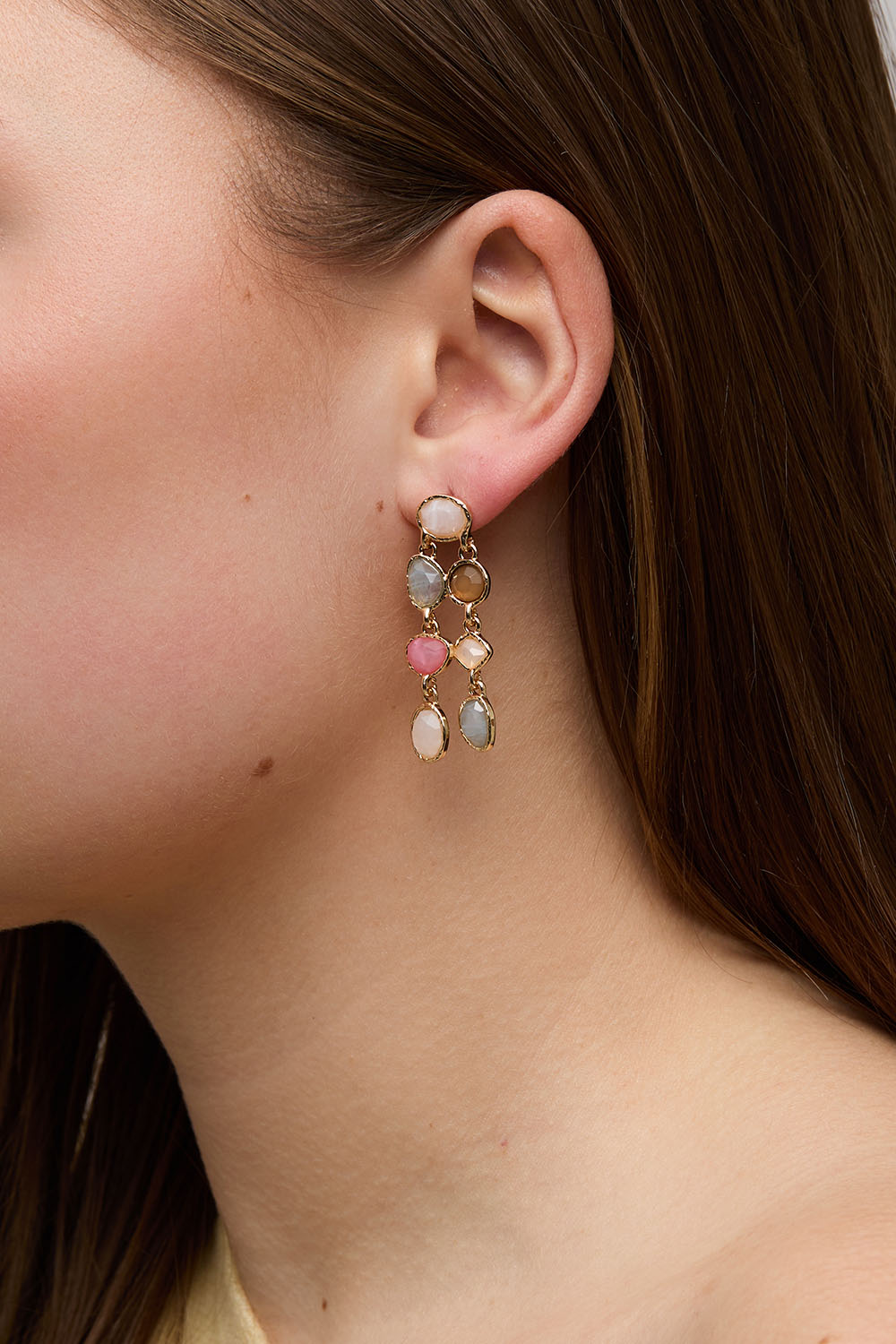 Örhängen med två hängen av stenar i olika färger