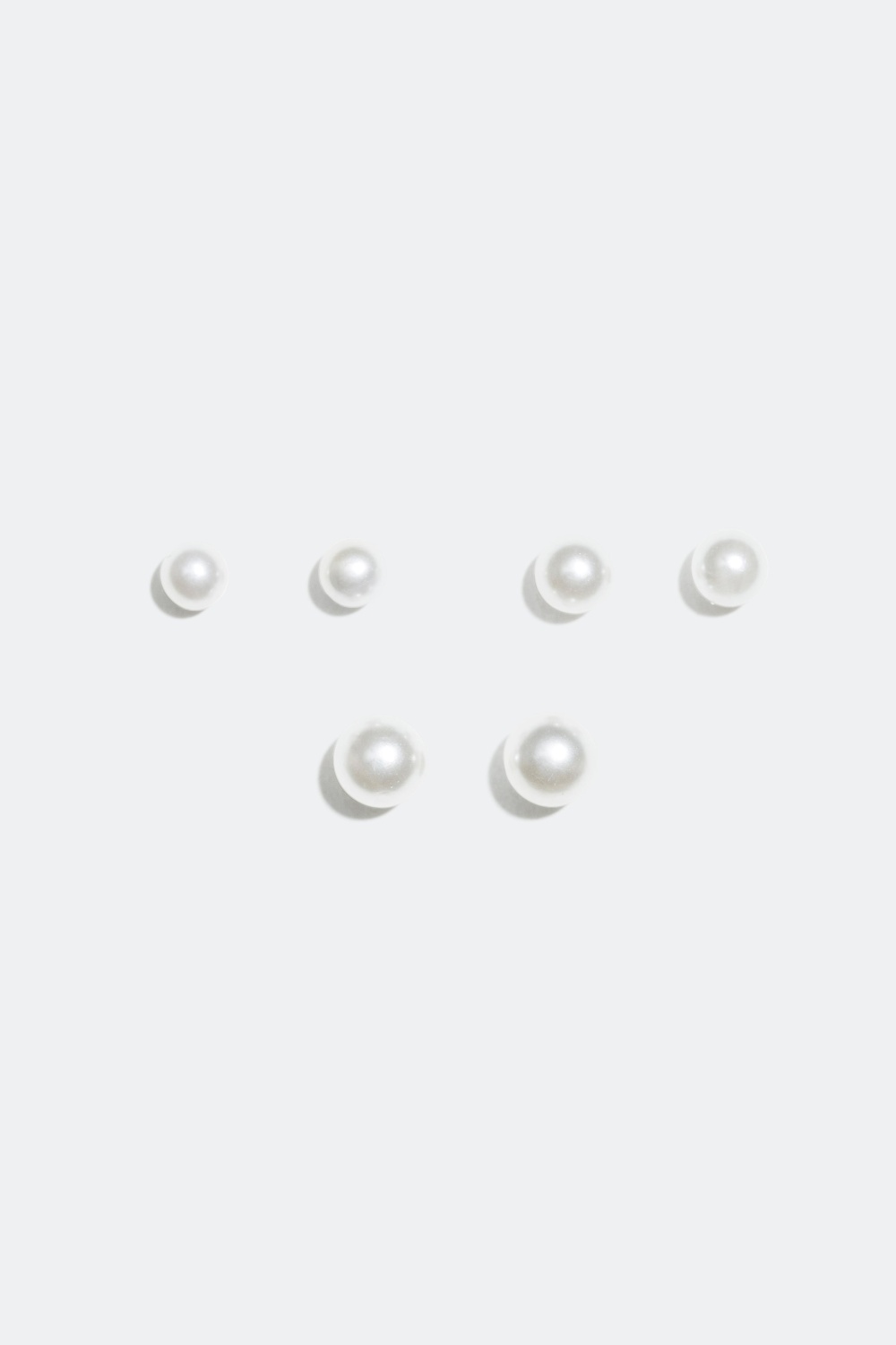 Klassiska och tidlösa favoriter! Här får du tre par pärlörhängen i plast i ett paket. Perfekta örhängen att bära tillsammans om du har flera hål i öronen.