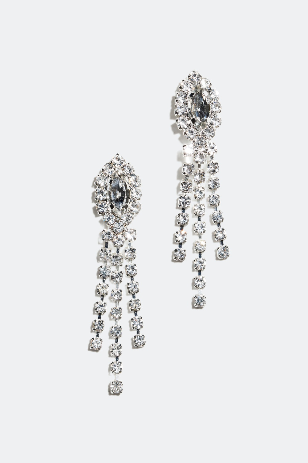Hängande strassörhängen med sten i oval form och tre länkar i olika längd.