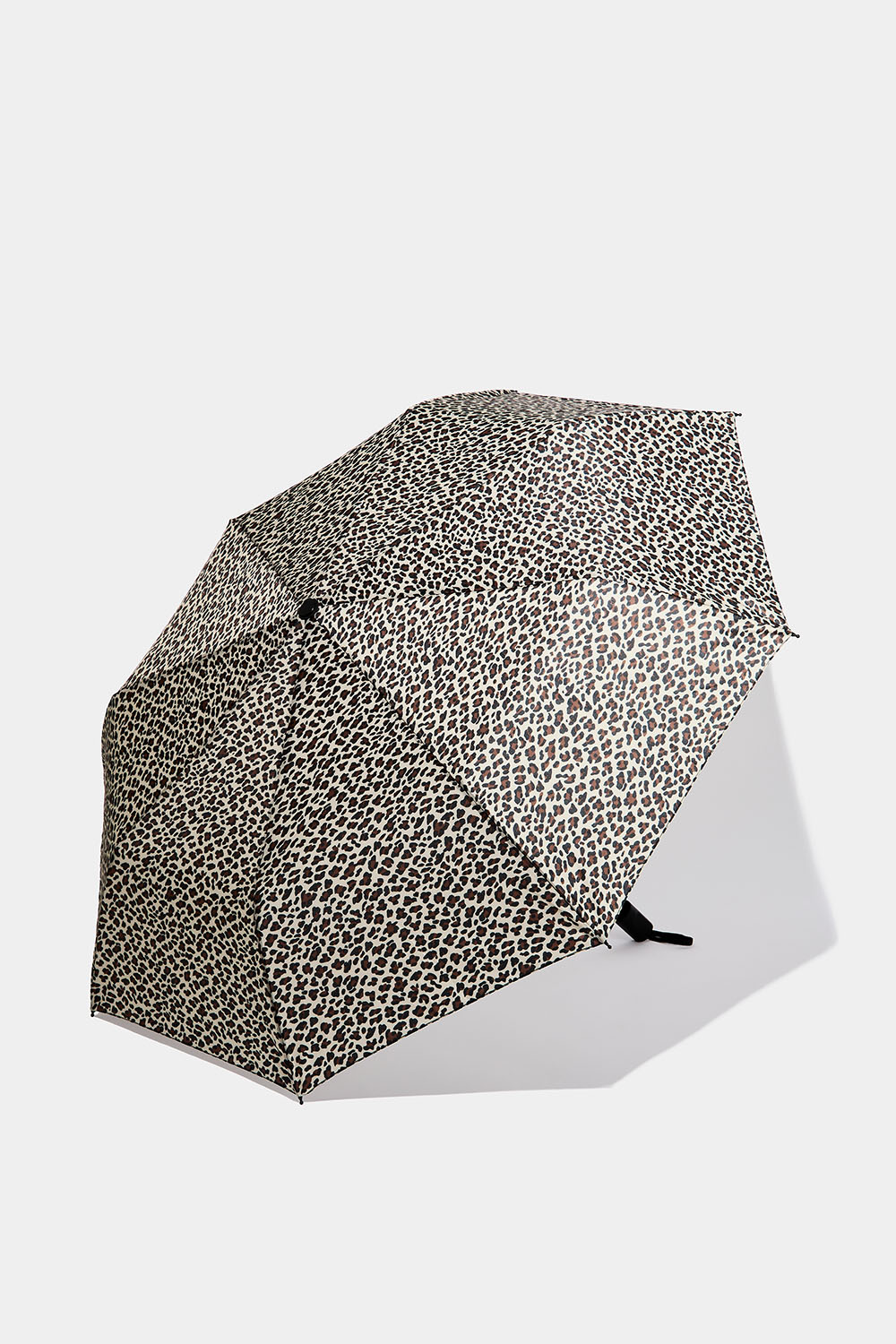 Ihopfällbart paraply med matchande fodral i leopardmönster. Smidigt att ha med sig i väskan.