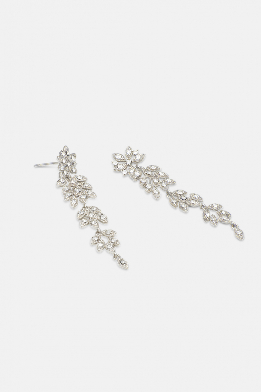In the petite version of our Laurel, realize your full opulence with these gorgeous long earrings. Set in a near three-dimensional fashion, these small diamond-clear crystals are feathered in a manner that is sure to stun.