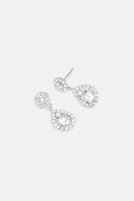 A petite version of its predecessor, Sofia's exquisite design makes this truly versatile and suitable for any style and occasion. Crystal offers multifaceted, clear-as-diamond crystals framed by smaller clear crystals on the large teardrop as well as the round base. An instant favourite.