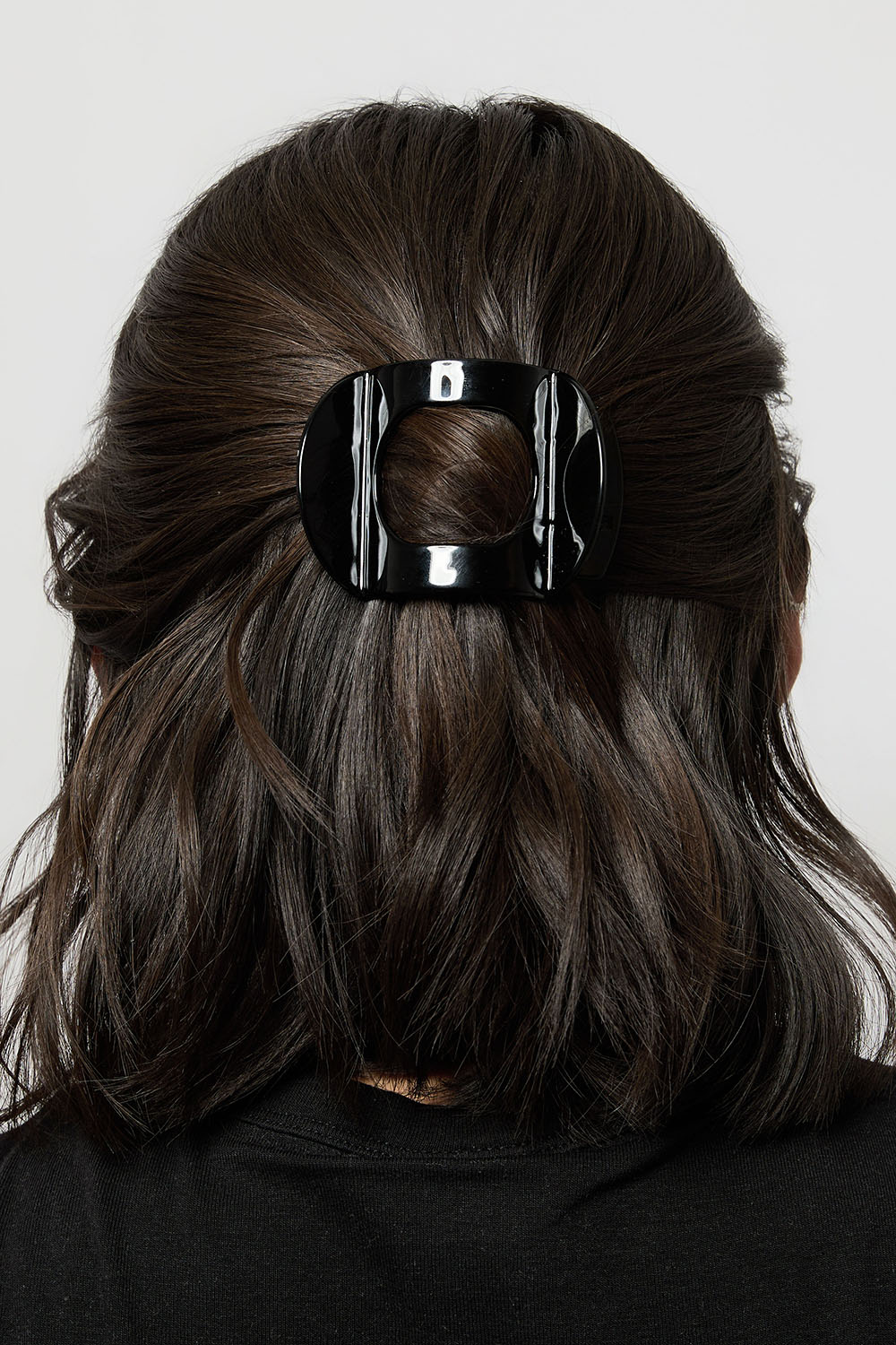 Denna klämma är perfekt när du vill sätta upp håret snabbt. Klämman har en design som följer formen på bakhuvudet, vilket gör att den sitter skönt i håret. Du kan luta dig tillbaka t.ex. i bilen eller i soffan utan att något sticker i bakhuvudet. Du fäster klämman ifrån sidan och är mycket lätt att använda. På insidan av klämman sitter piggar som gör att den fäster bra i håret.