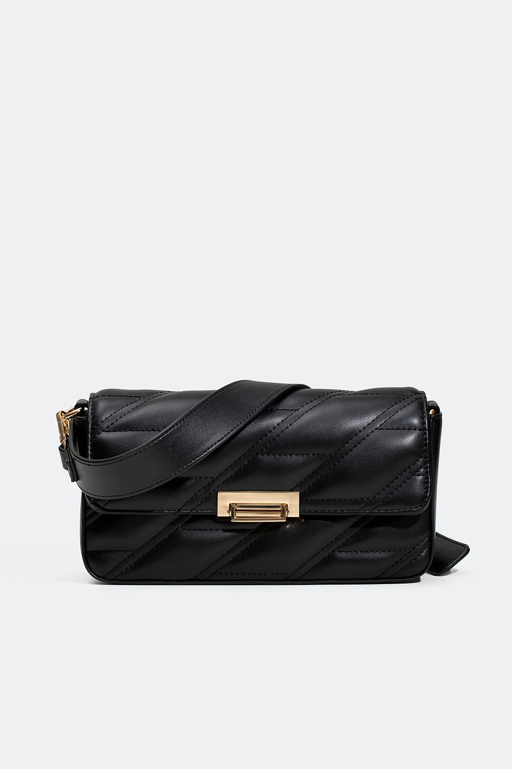 Svart rektangulär axelremsväska i quiltad design. Kommer med ett guldfärgat spänne och ett extra innerfack. En stilren axelremsväska i perfekt storlek för dina viktigaste tillhörigheter.