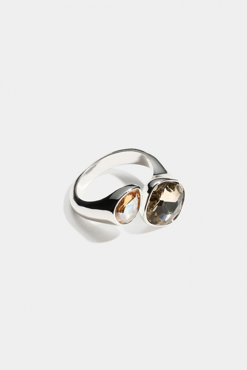 Öppen ring med beige och ljusbruna glasstenar i gruppen Smycken / Ringar / Strass hos Glitter (2560016684)