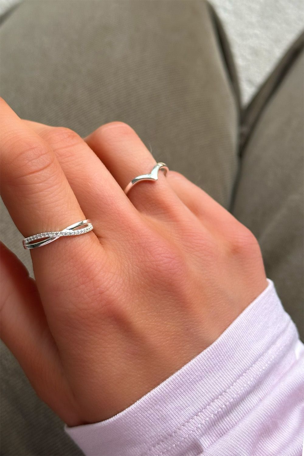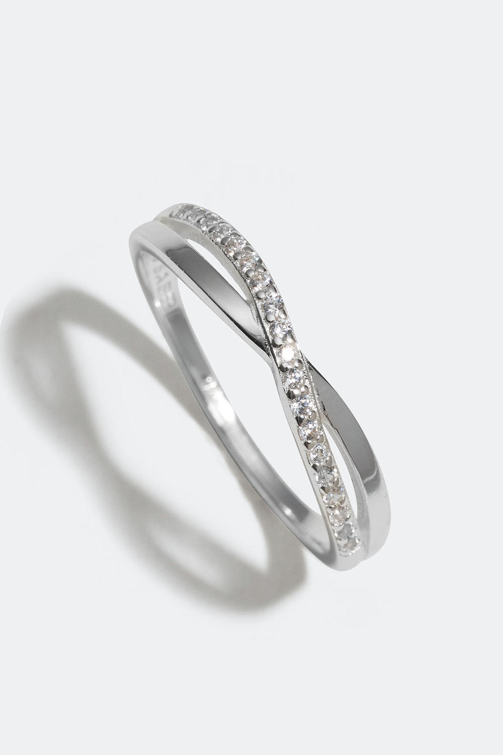 Korsad ring i äkta silver som är dekorerad med Cubic Zirconia stenar. Stilren silverring med skimrande design som passar till alla tillfällen.