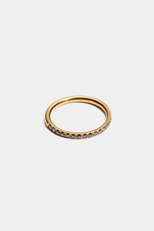 Ring i högpolerat rostfritt stål som är PVD-pläterat med 18K guld och dekorerad med bruna Cubic Zirconia-stenar.