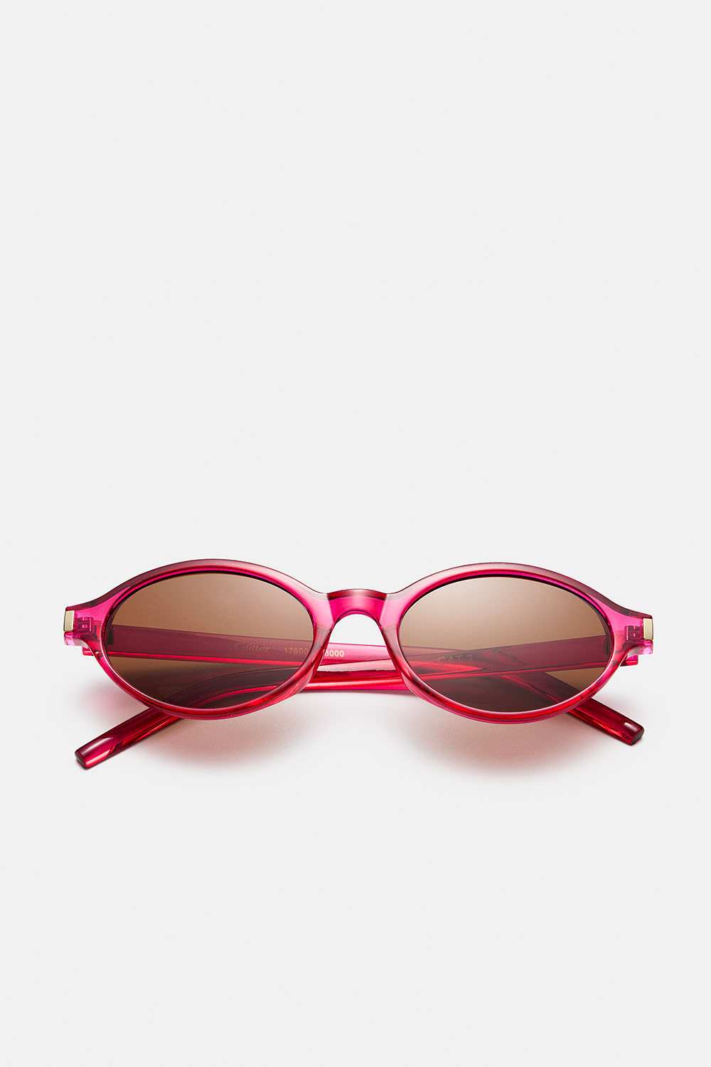 Nätta ovala solglasögon med röda transparenta bågar och guldfärgad detalj. Ett par stilrena klassiker som snabbt blir en favorit.