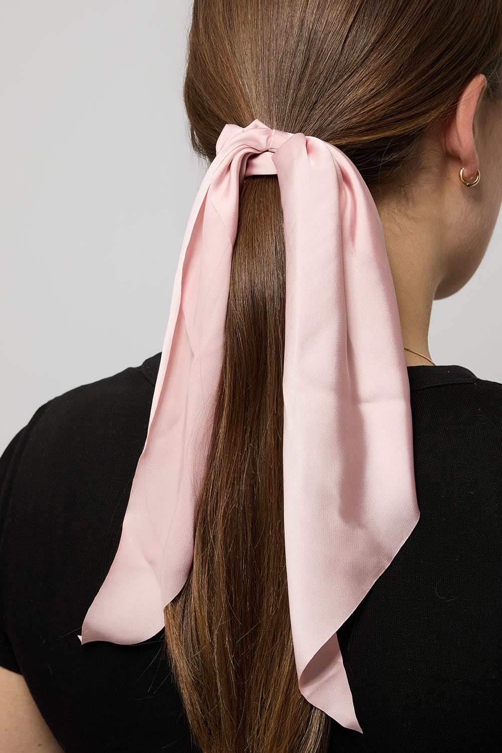 Scrunchie tail som har rosa tygöverdrag. En fin detalj som ger en illusion av att man knutit en scarf runt sin uppsättning.
