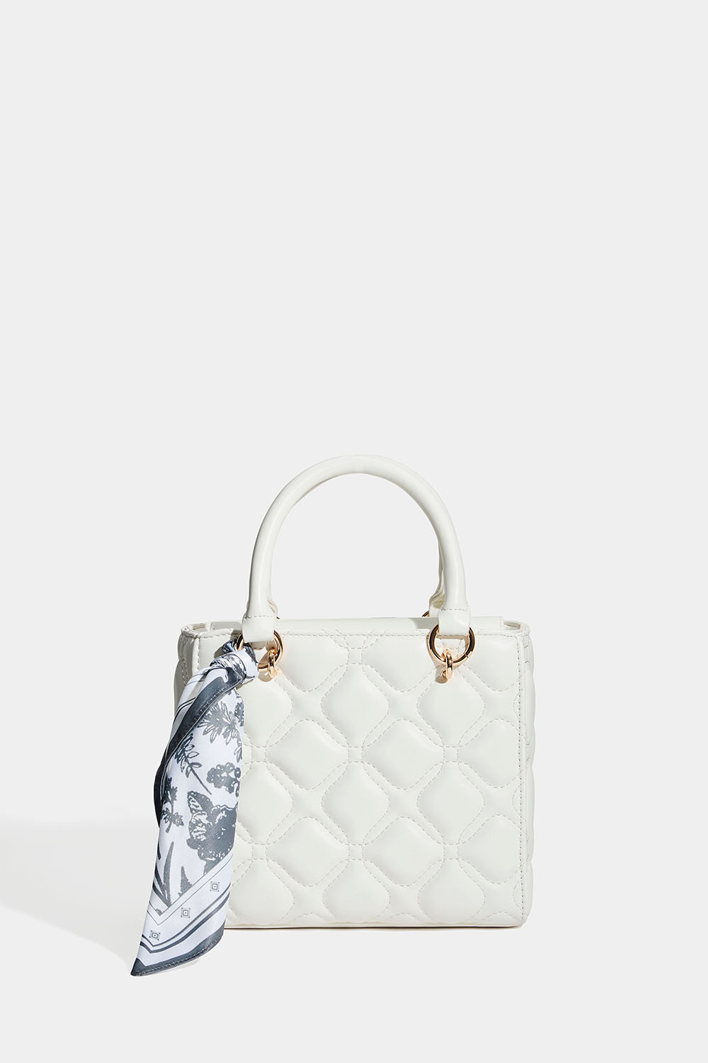 Rosa väska med två handtag, quiltad design och medföljade scarf i rosa. Väskan stängs med en magnetknapp och har ett litet innerfack som stängs med dragkedja. Kommer även med en avtagbar axelrem så att man kan ha väska över axeln eller crossbody.