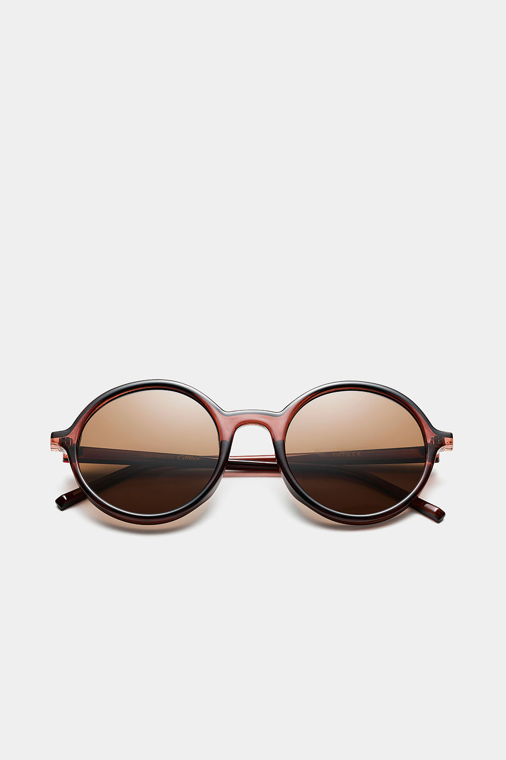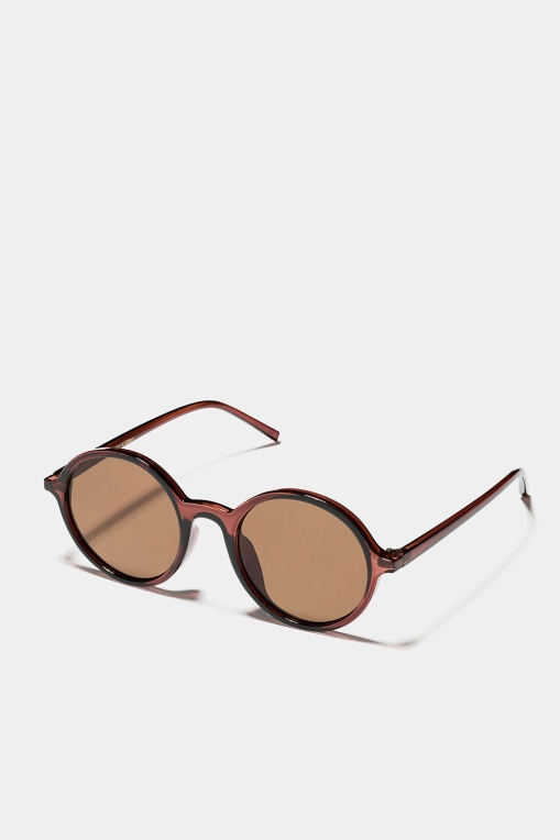 Stilrena solglasögon med bruna rundade bågar och brunt tonade glas.