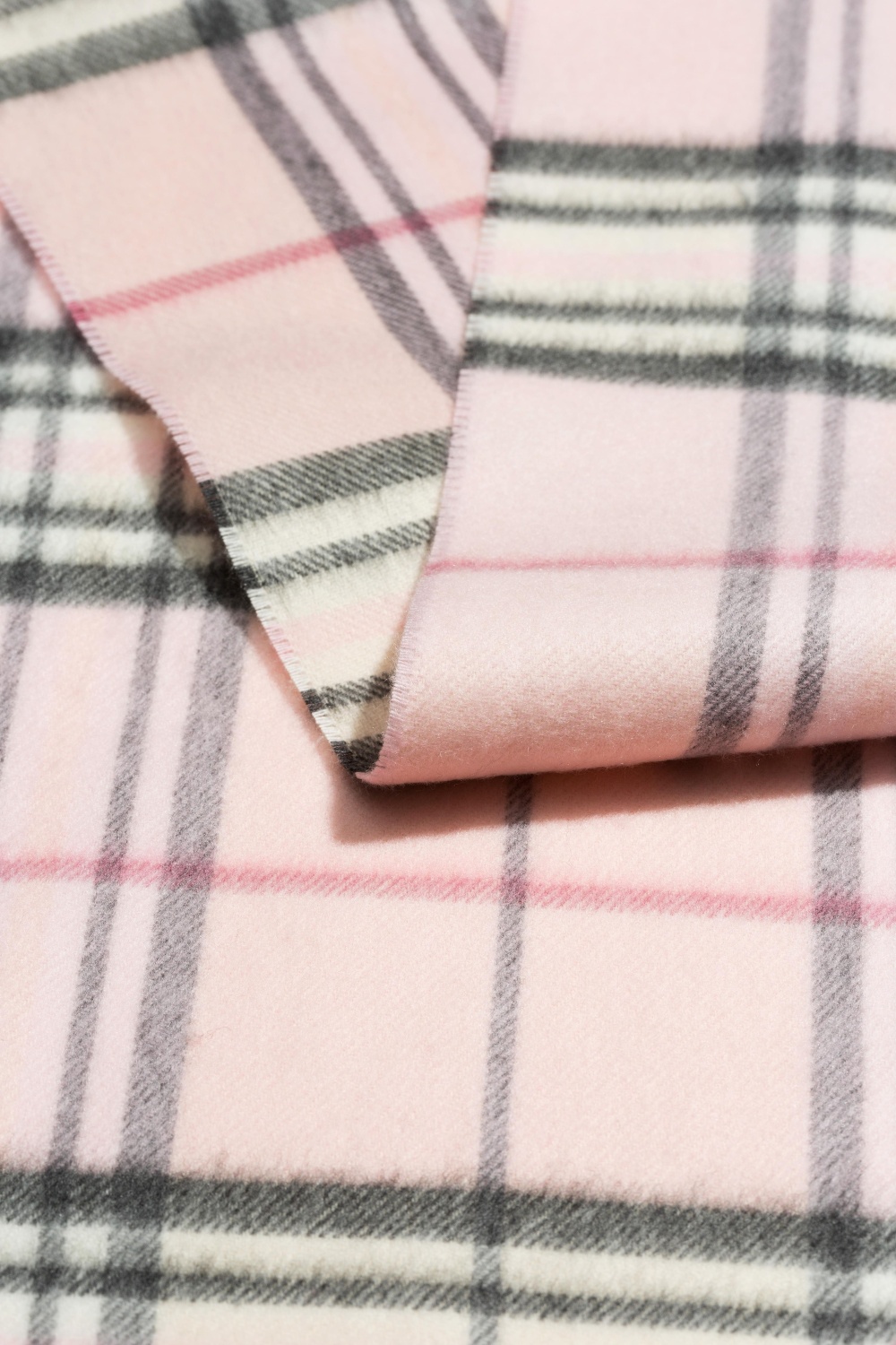 Rutig halsduk med fransar, rosa i gruppen Accessoarer / Stickat / Halsdukar hos Glitter (325159514000)