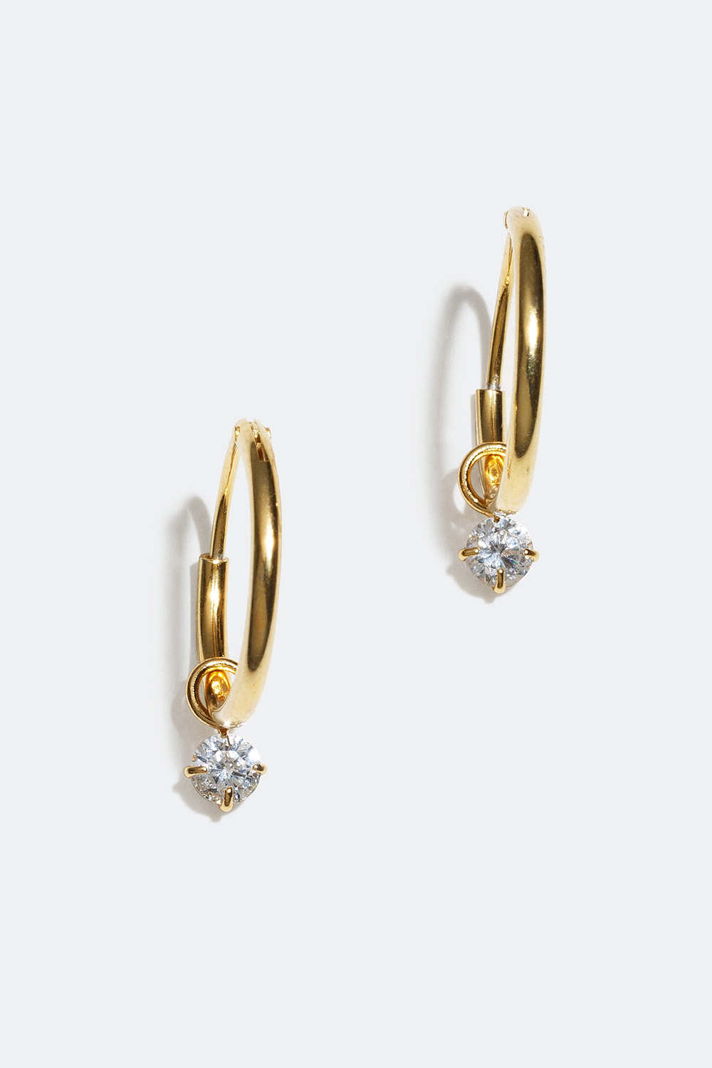 Hoops med glasstenar, förgyllda med 18K guld, 1 cm i gruppen Guldpläterat äkta silver / Guldpläterade örhängen hos Glitter (553000832000)