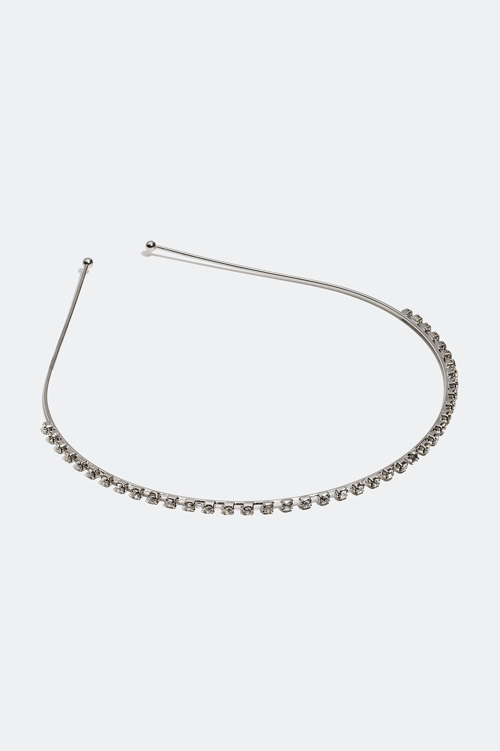 Smalt diadem i silverfärgad metall som är dekorerat med små glasstenar upptill. Ett skimrande diadem med enkel design som passar perfekt till festliga tillfällen där du vill addera lite skimmer till din outfit.