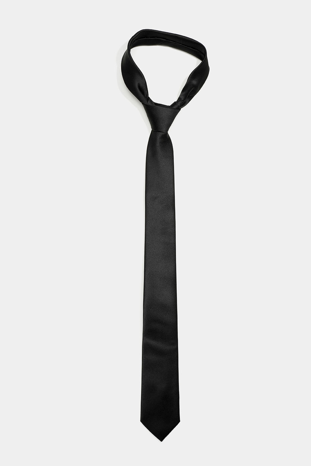 Svart slips i semiglansigt tyg. Slipsen är färdigknuten och är enkel att justera i storlek.