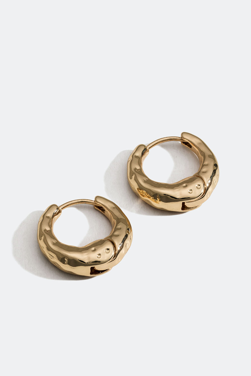 Små chunky hoops i guldfärgade metall med struktur.