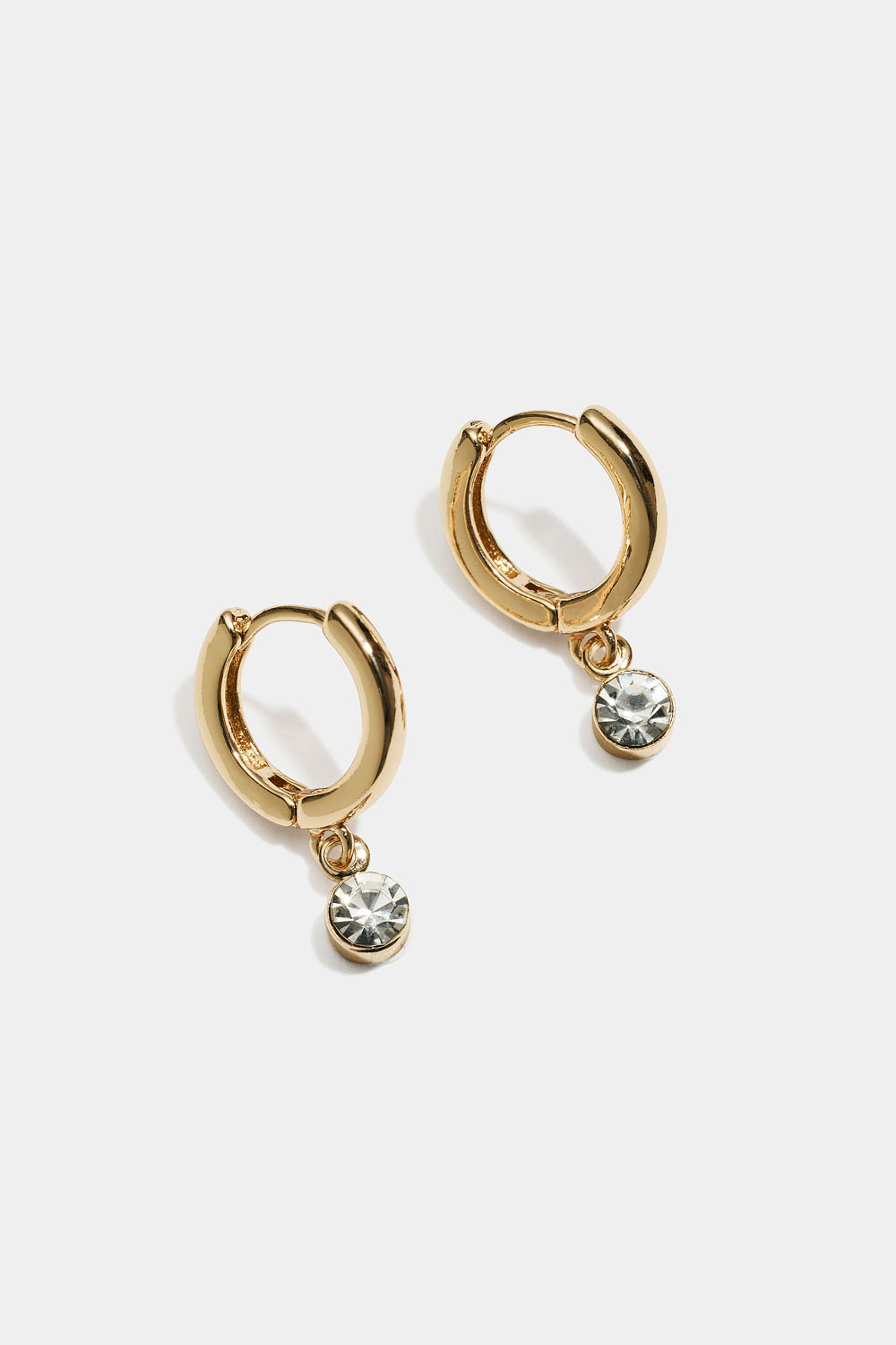 Små hoops i guldfärgad metall med en liten rund hängande glassten.