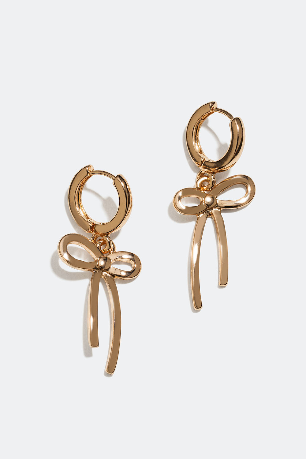 Små hoops i blank guldfärgad metall med dekorativa hängen av rosetter.