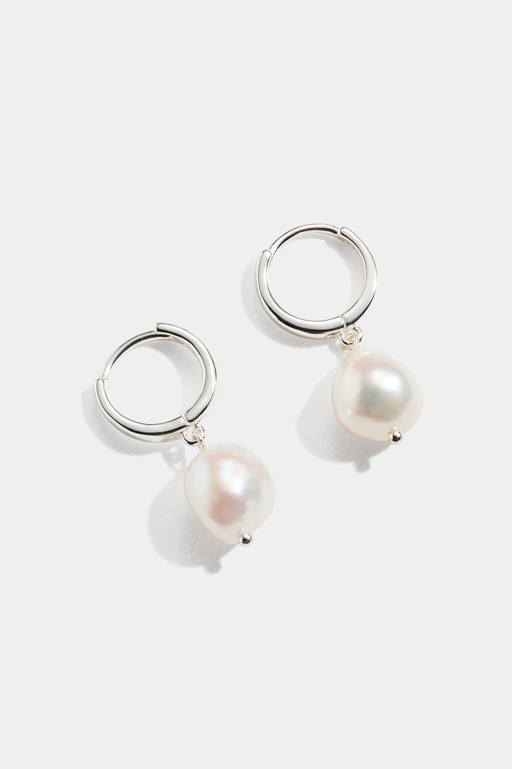 Små hoops i äkta silver med hängande pärla i organisk form.