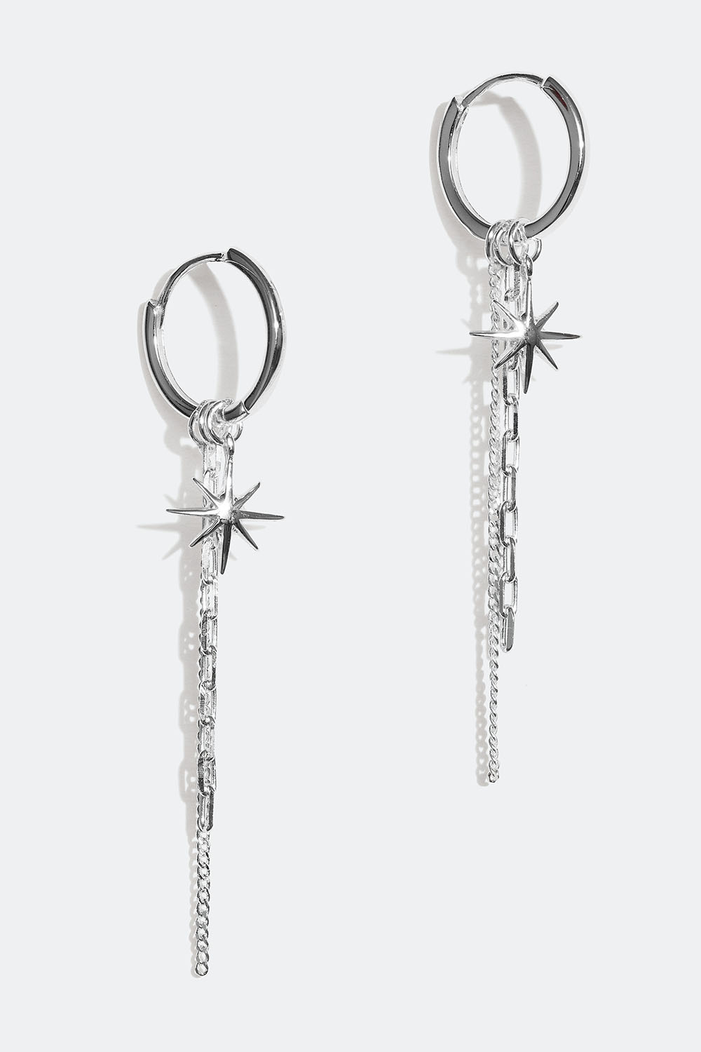 Små hoops i äkta silver med hängen av stjärnor och långa länkar. Ett par dekorativa örhängen som passar till alla tillfällen.