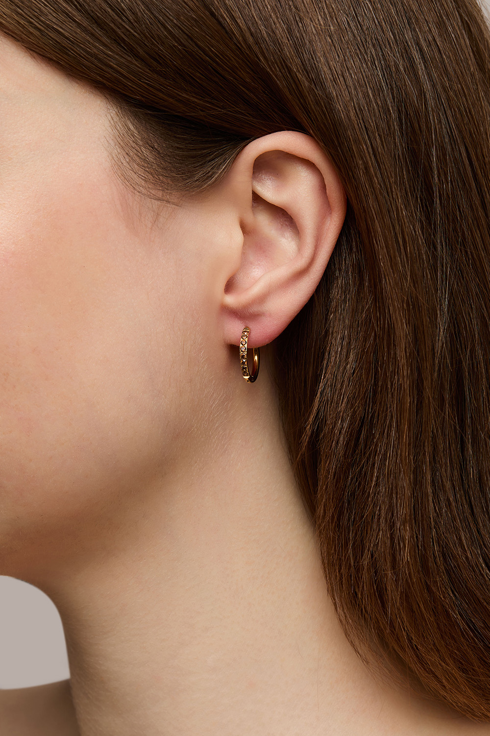 Små hoops i stål med 18k guld med bruna cubic zirconia