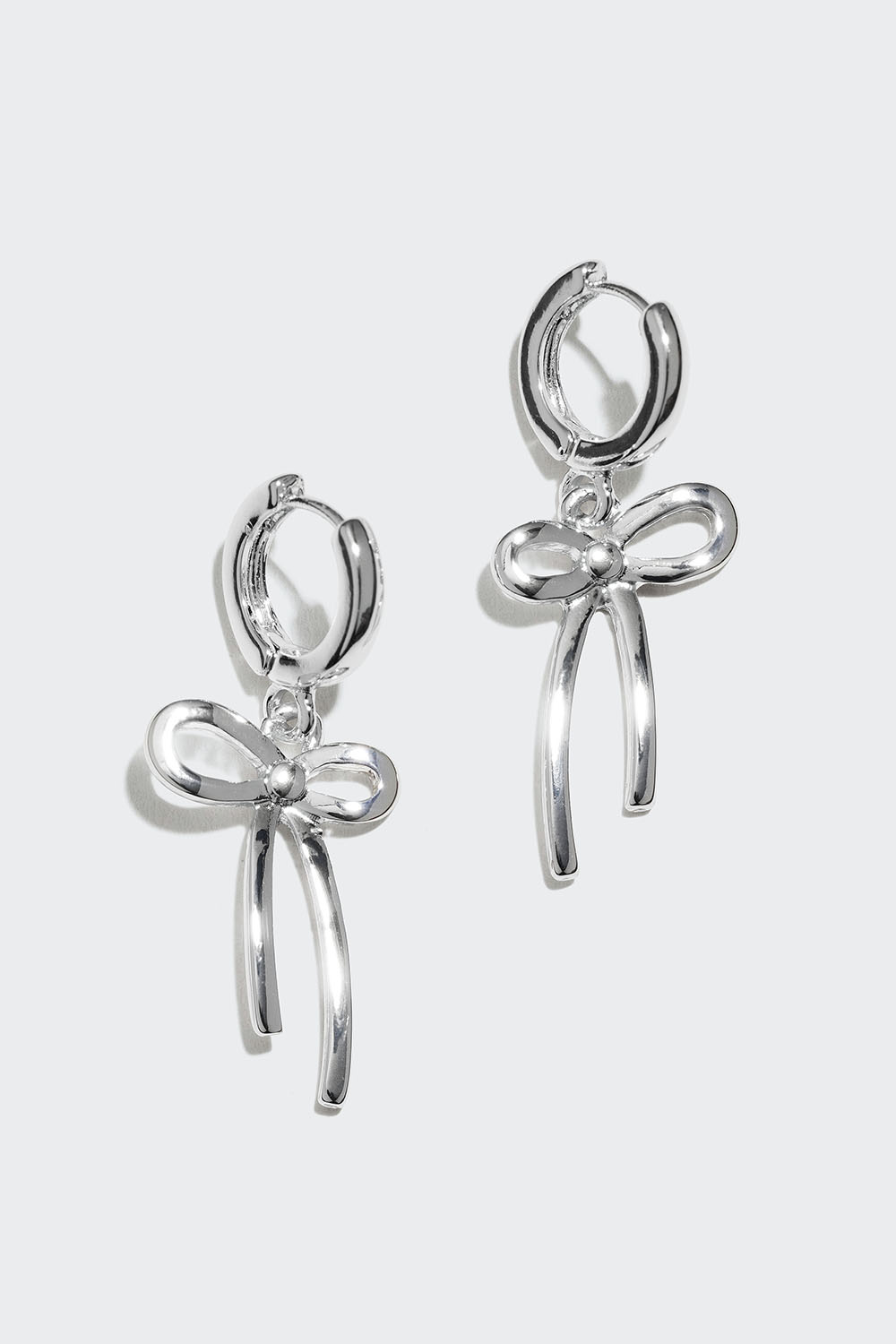 Små hoops i blank metall med dekorativa hängen av rosetter.