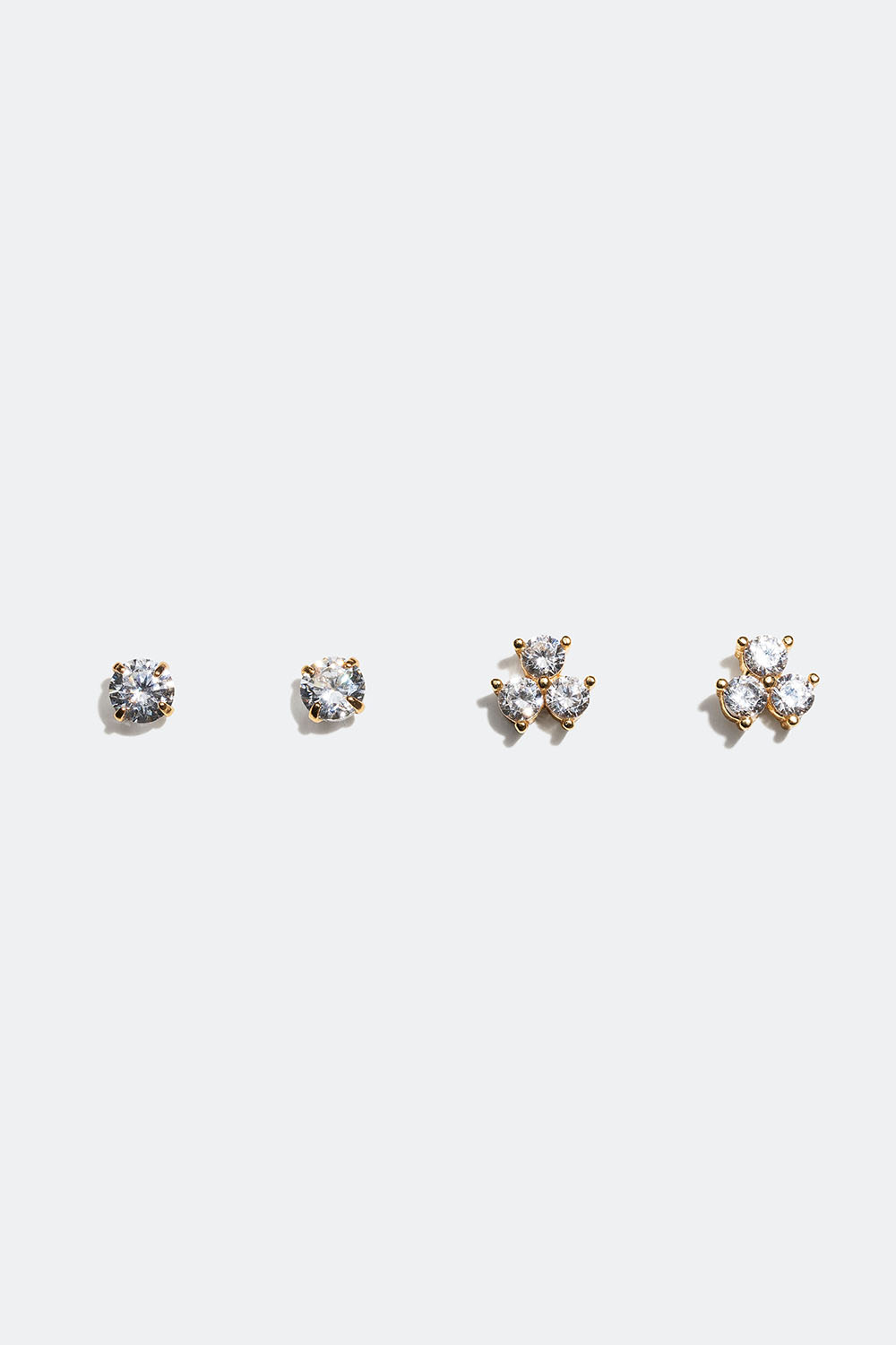 2-pack med små studs i 18k guldpläterat äkta silver med Cubic Zirconia stenar. Stilrent multipack med vardagsörhängen som passar perfekt att bära tillsammans om du har flera hål i öronen.