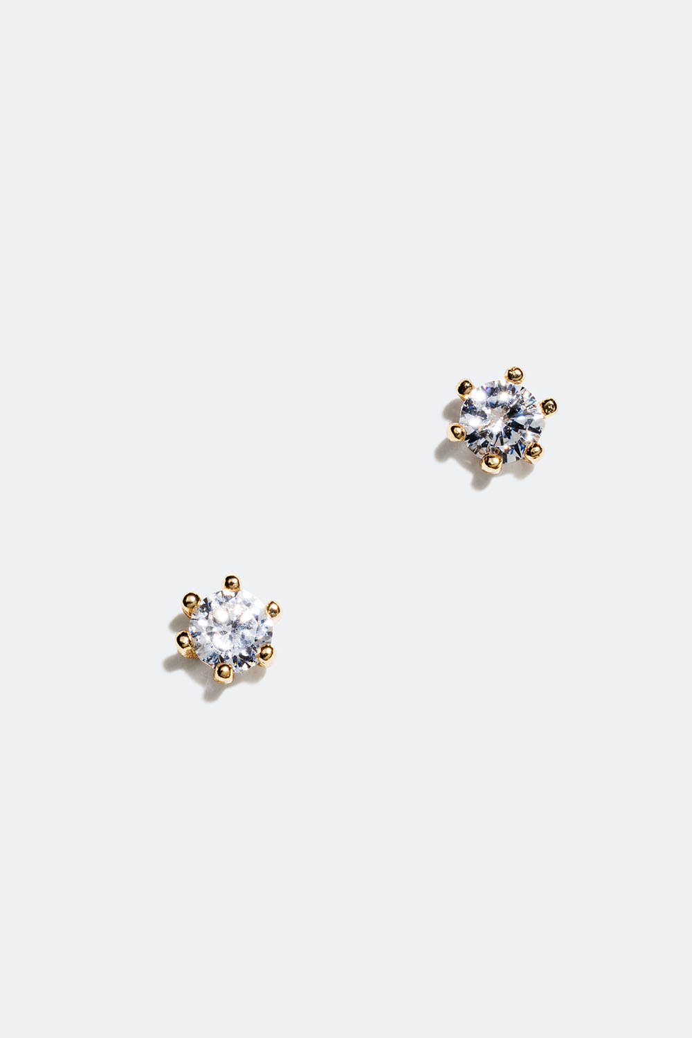 Små studs i 18 karat guldpläterat äkta silver med runda glasstenar i Cubic Zirconia.