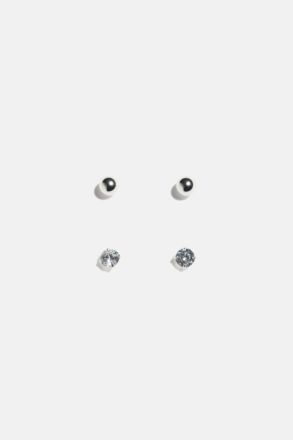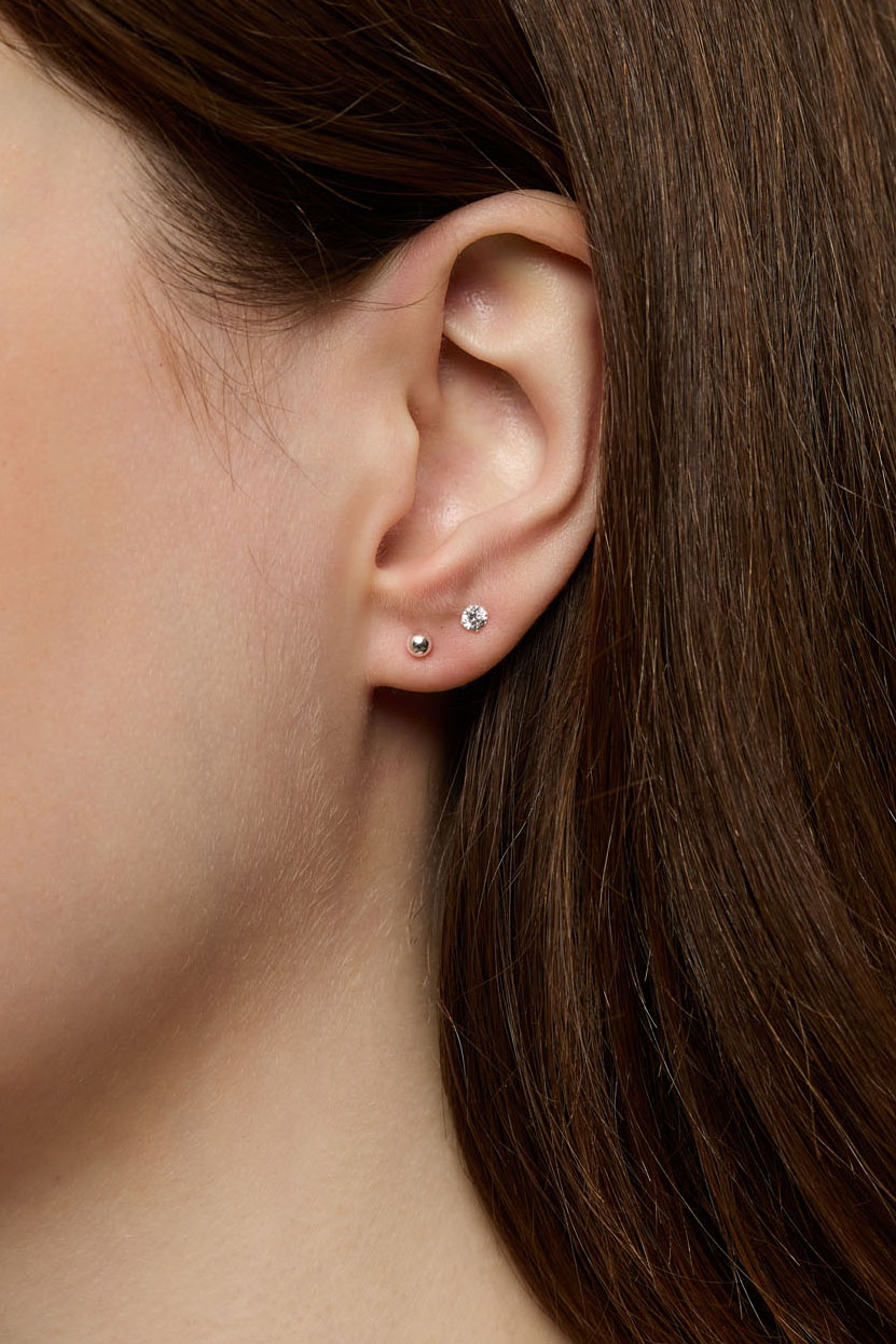 Två par ministuds i äkta silver. Ett bar klassiska kulor och ett par med små Cubic Zirconia-stenar.