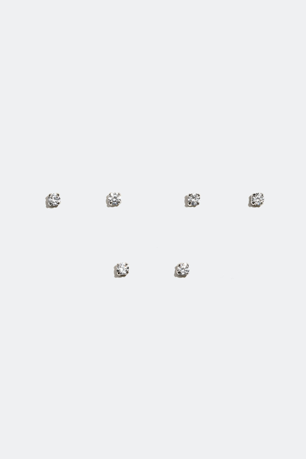 Små skimrande örhängen i äkta silver med Cubic Zirconia stenar. Ett 3-pack klassiska studs med tidlös design som passar perfekt att bära tillsammans om du har flera hål i öronen. Använd både till fest och till vardags.