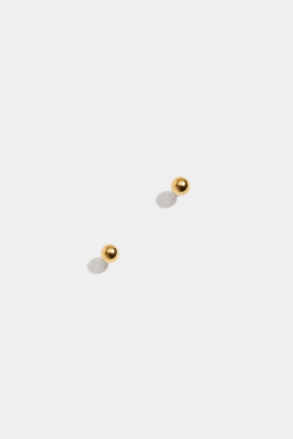 Små, runda studs i högpolerat rostfritt stål som är PVD-pläterat med 18K guld.