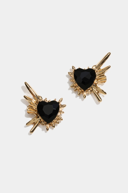 Studs med spetsiga detaljer och svarta hjärtformade glasstenar.