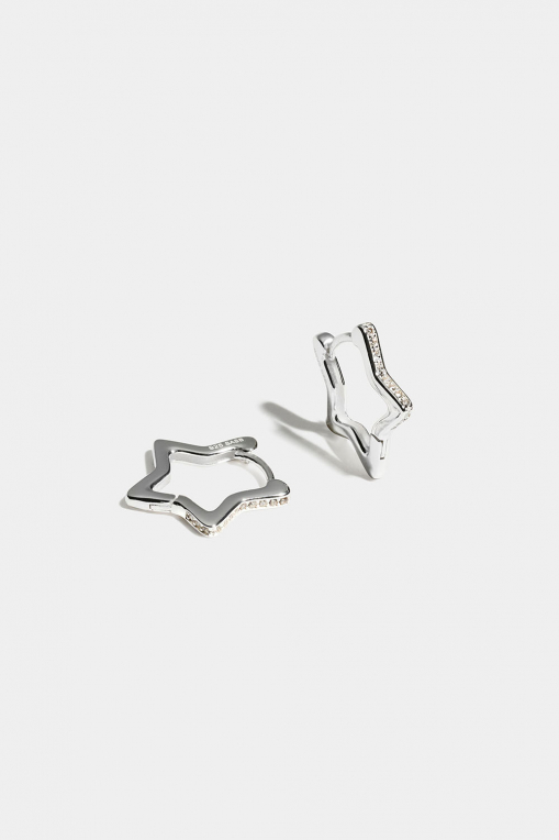 Hoops i äkta silver med stjärnform dekorerade med små Cubic Zirconia-stenar längs framsidan.