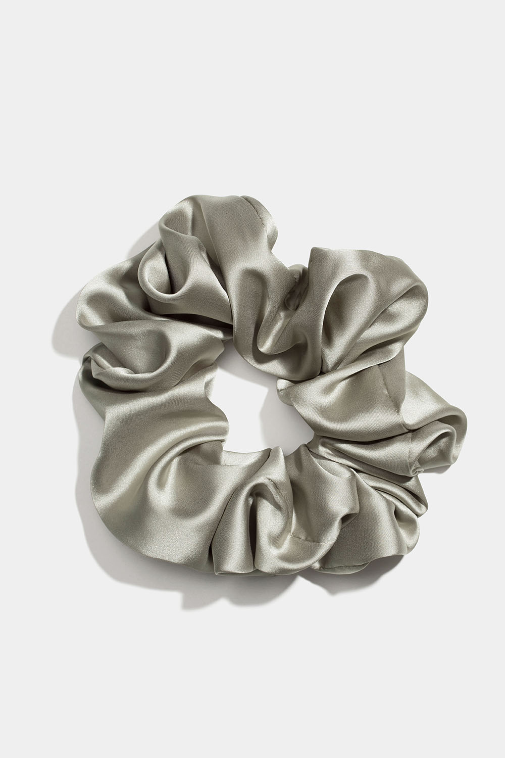 Stor ljusgrön scrunchie i glansig sidenimitation. Fin håraccessoar med mycket volym som passar perfekt till exempelvis en låg hästsvans eller knut.