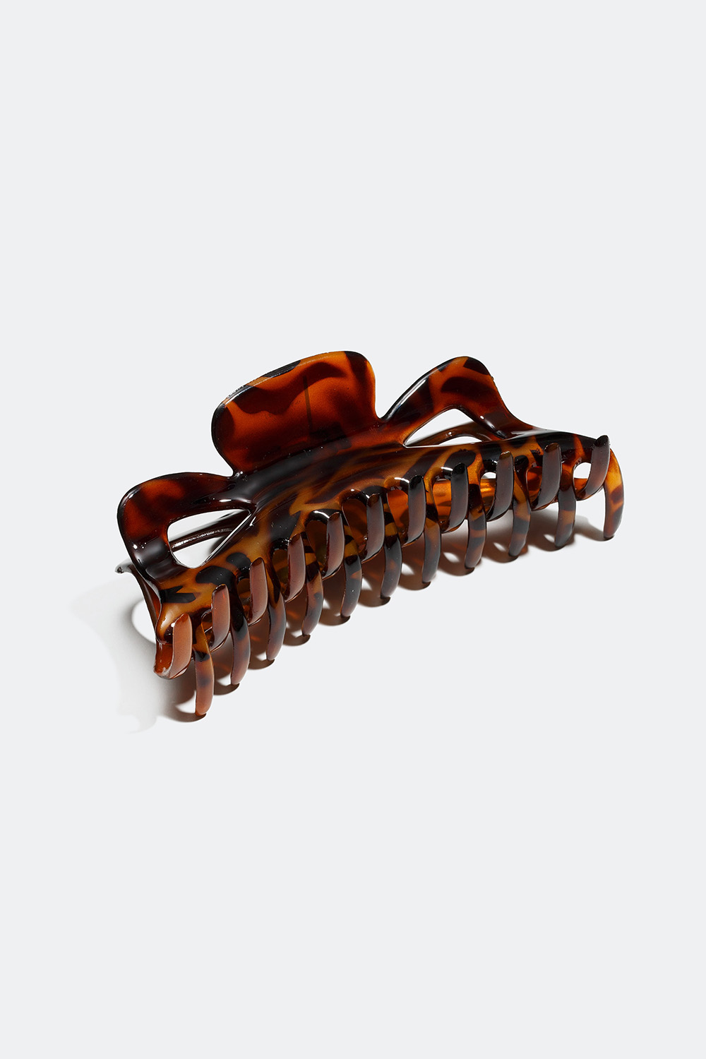 Hårklämma med klassisk design i större modell som klarar uppsättningar av mycket hår. Kommer i brun färg med melerat mönster och passar perfekt till dig med tjock eller lockigt hår.