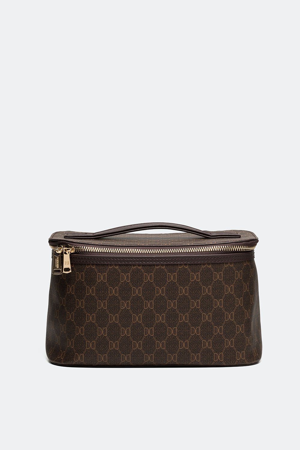 Stor brun necessär med Don Donna-loggan printad. En rymlig necessär med plats för dina viktigaste nödvändigheter, kommer även med flera mindre innerfack för mindre produkter.