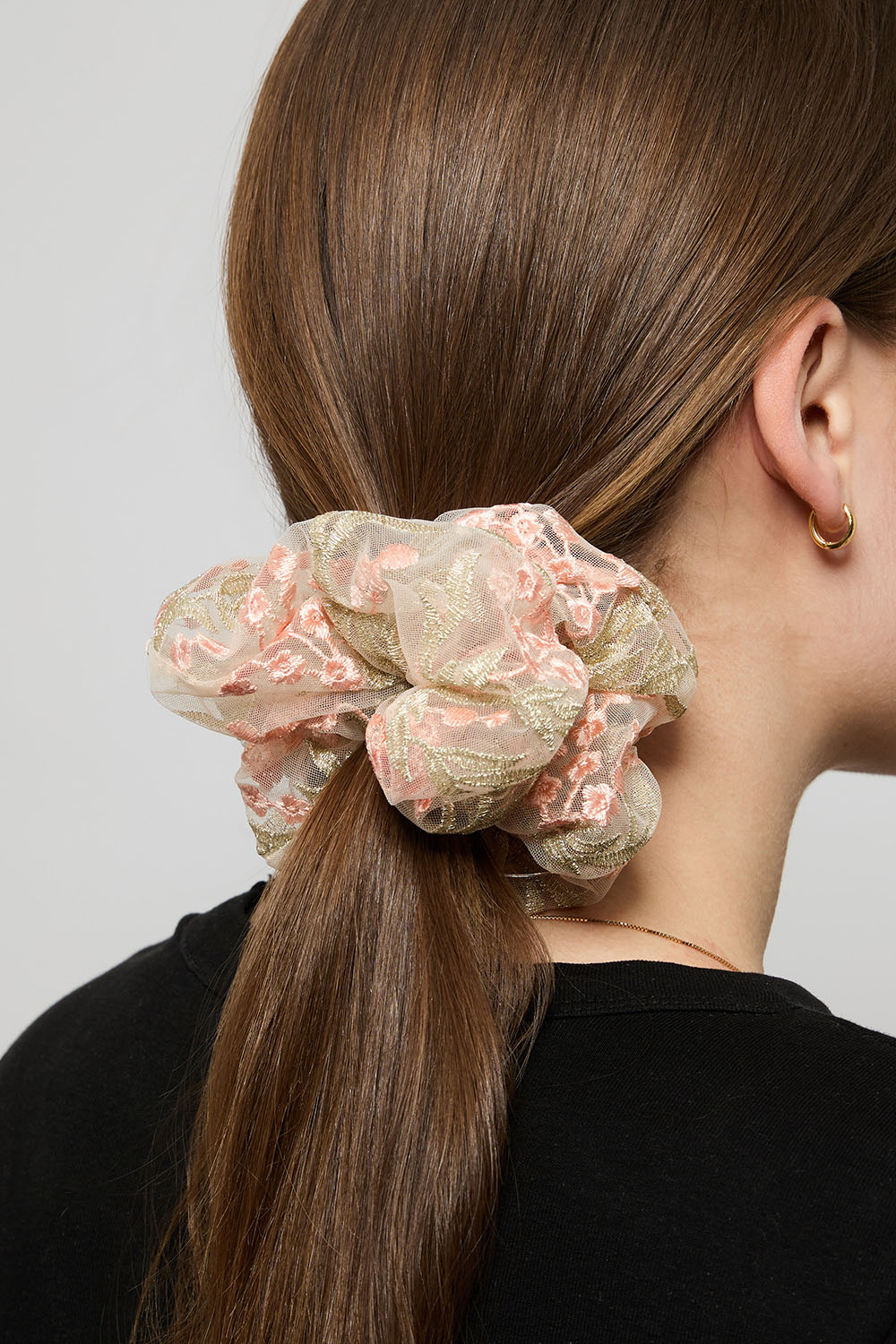 Stor scrunchir i spets med brodyr av blommor.