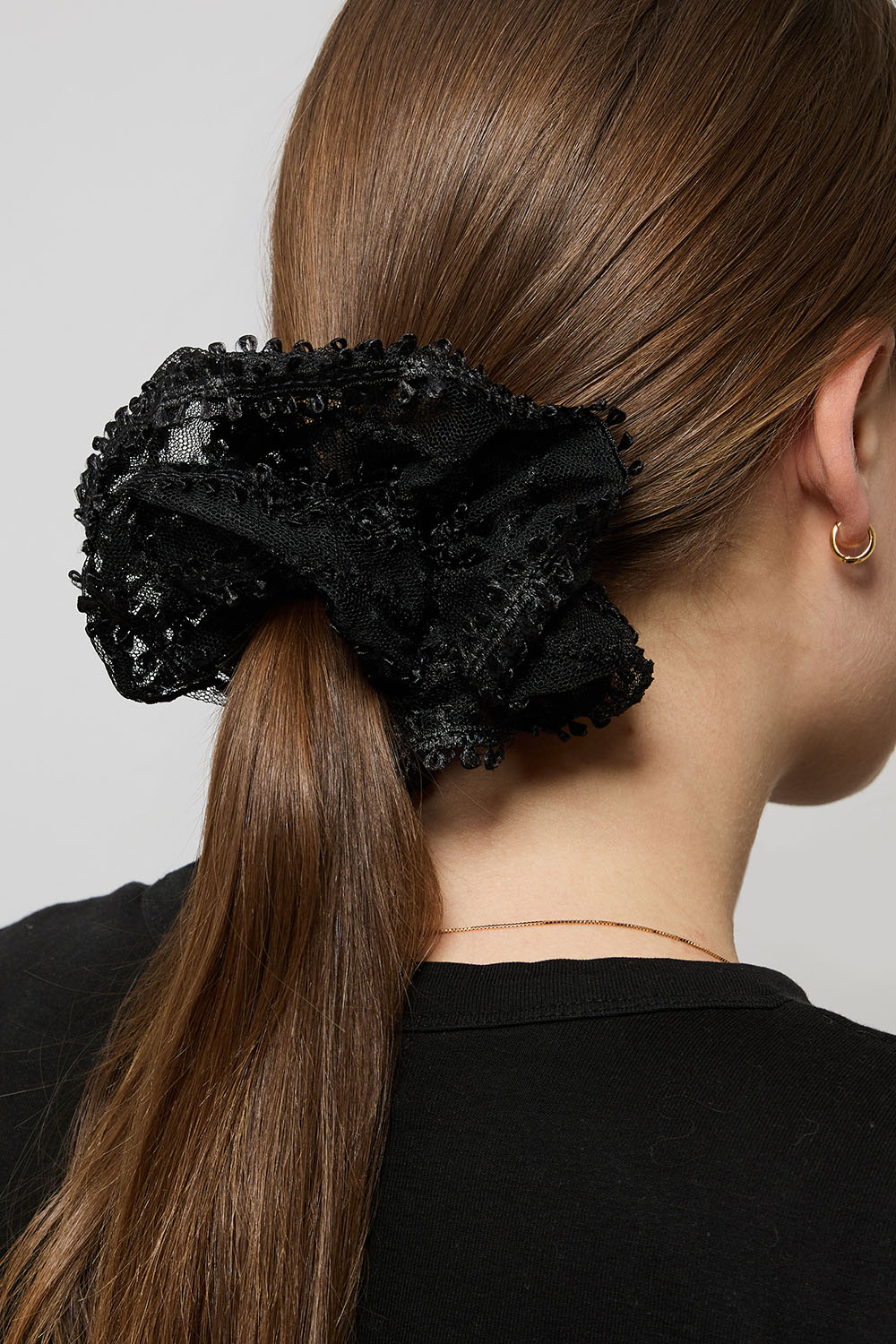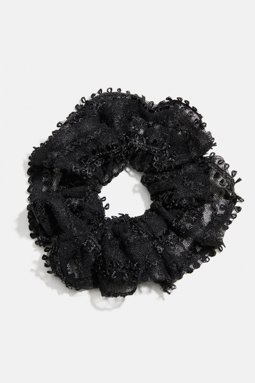 Stor scrunchie med svart dekorativt spetstyg.