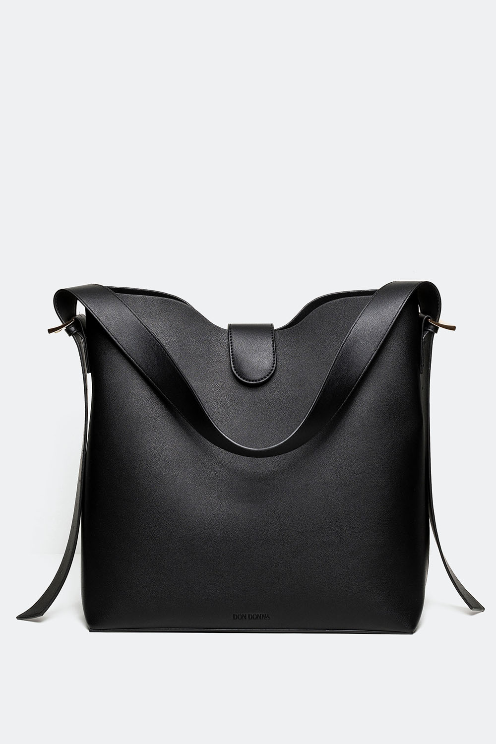 Stor svart väska med Don Donna-loggan präglad framtill. Väskan kommer med justerbar axelrem så att man även kan bära den som crossbody. Den kommer även med en mindre fastsydd innerväska som är stängbar med dragkedja. En perfekt, rymlig accessoar i vardagen.