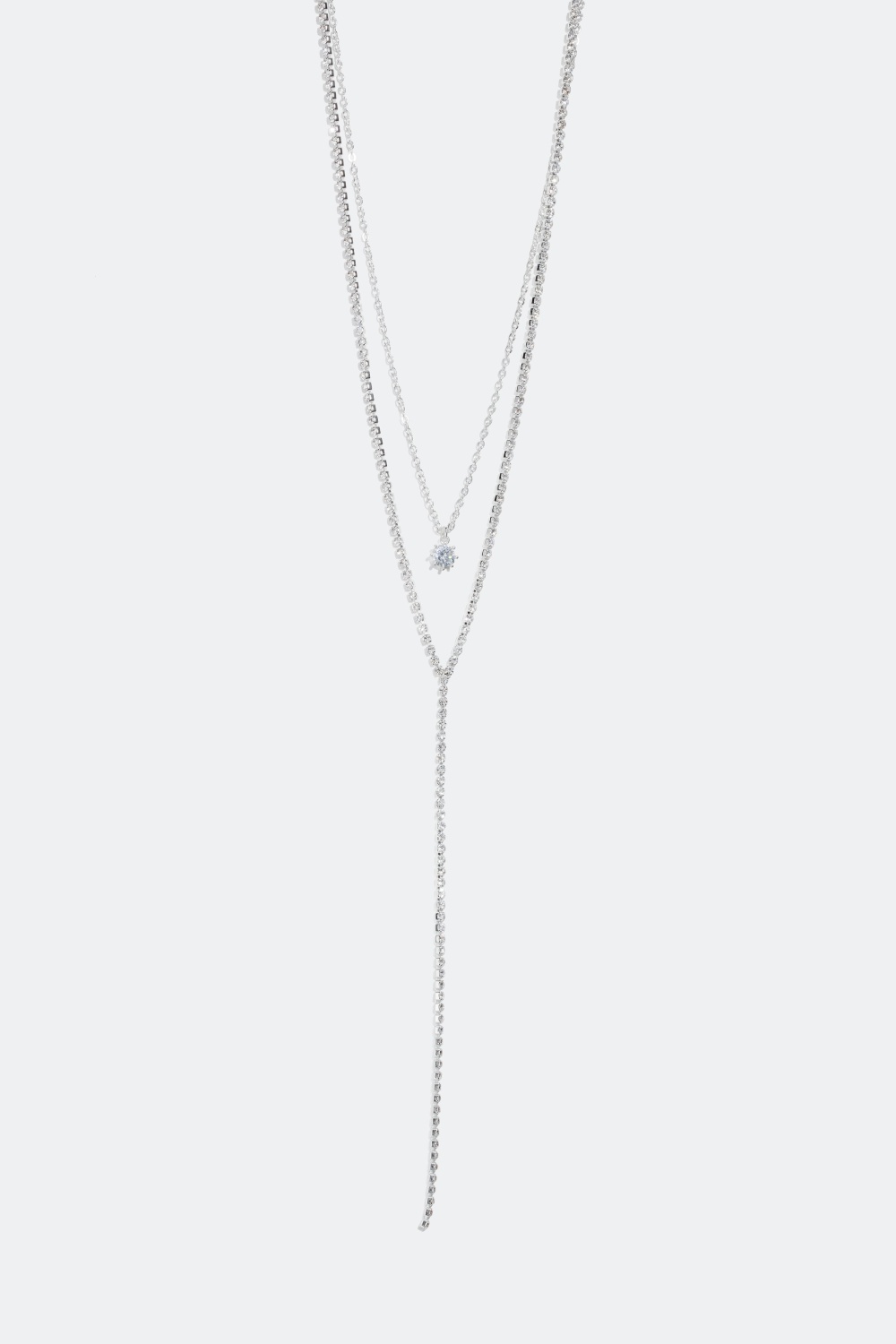 Snyggt strasshalsband i lager-på-lager format med två kedjor. En kortare med stor glassten och en längre helt i strasstenar.