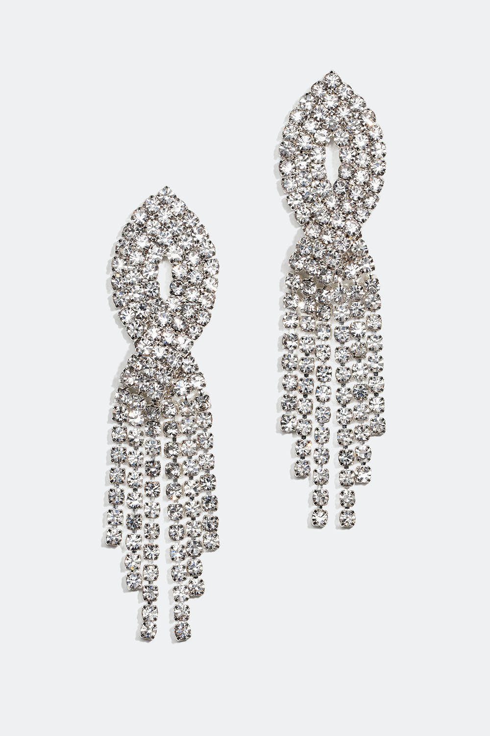 Strassörhängen med tre länkar utsmyckade med skimrande glasstenar i en överlappande design. Festliga örhängen som ger det lilla extra till din outfit.