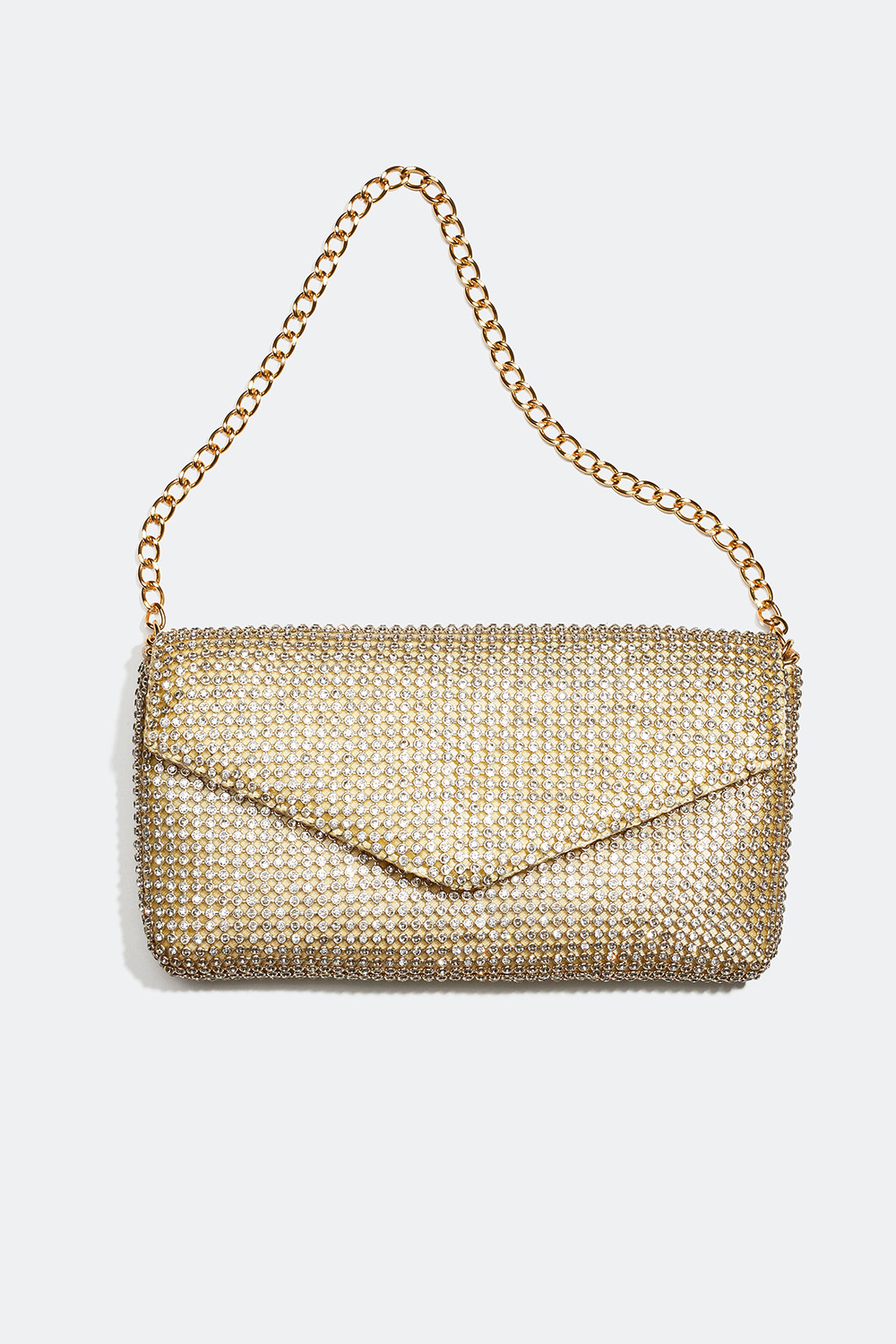 Med denna glittrande skönhet är du redo att festa direkt. Den lilla festväskan är dekorerad med strass på en gyllene bas. Väskan har en avtagbar axelrem och kan bäras både cross body och över axeln.