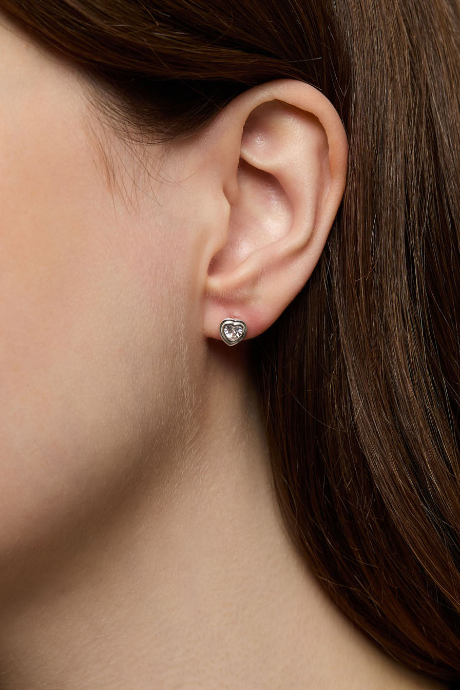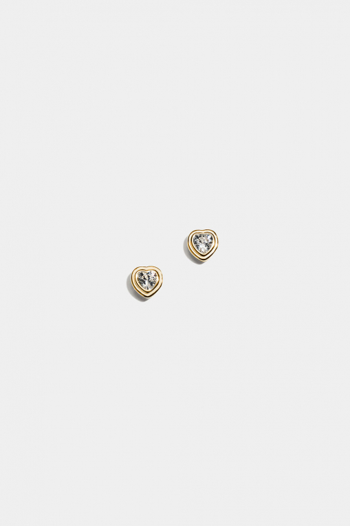 Studs i 18k guldpläterat äkta silver med dubbelkant och en hjärtformad Cubic Zirconia-sten i mitten.