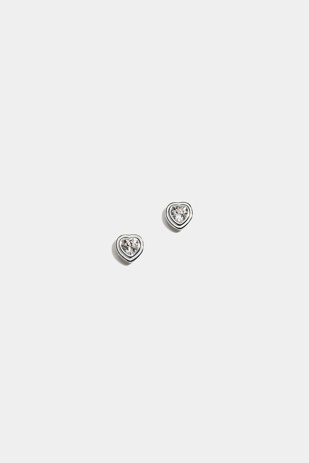 Studs i äkta silver med dubbelkant och en hjärtformad Cubic Zirconia-sten i mitten.
