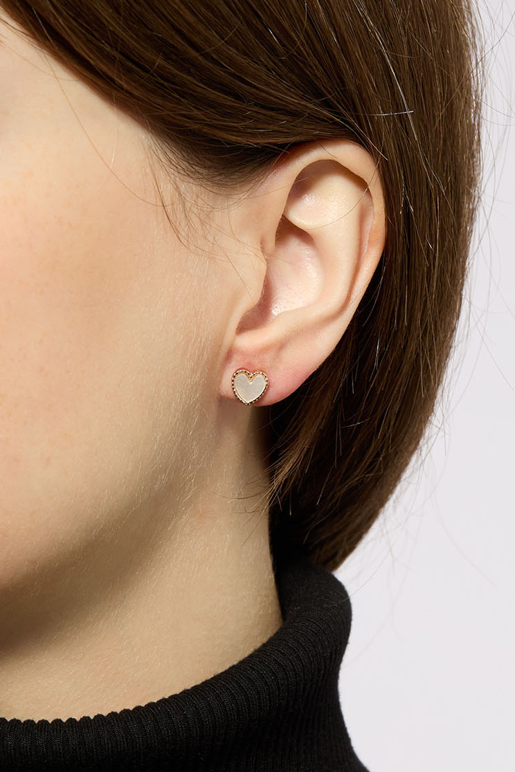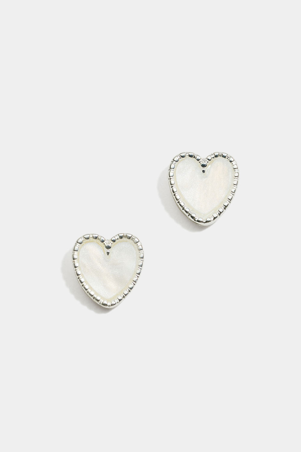 Studs med skimriga vita hjärtan med en tunn kant i silverfärgad metall.