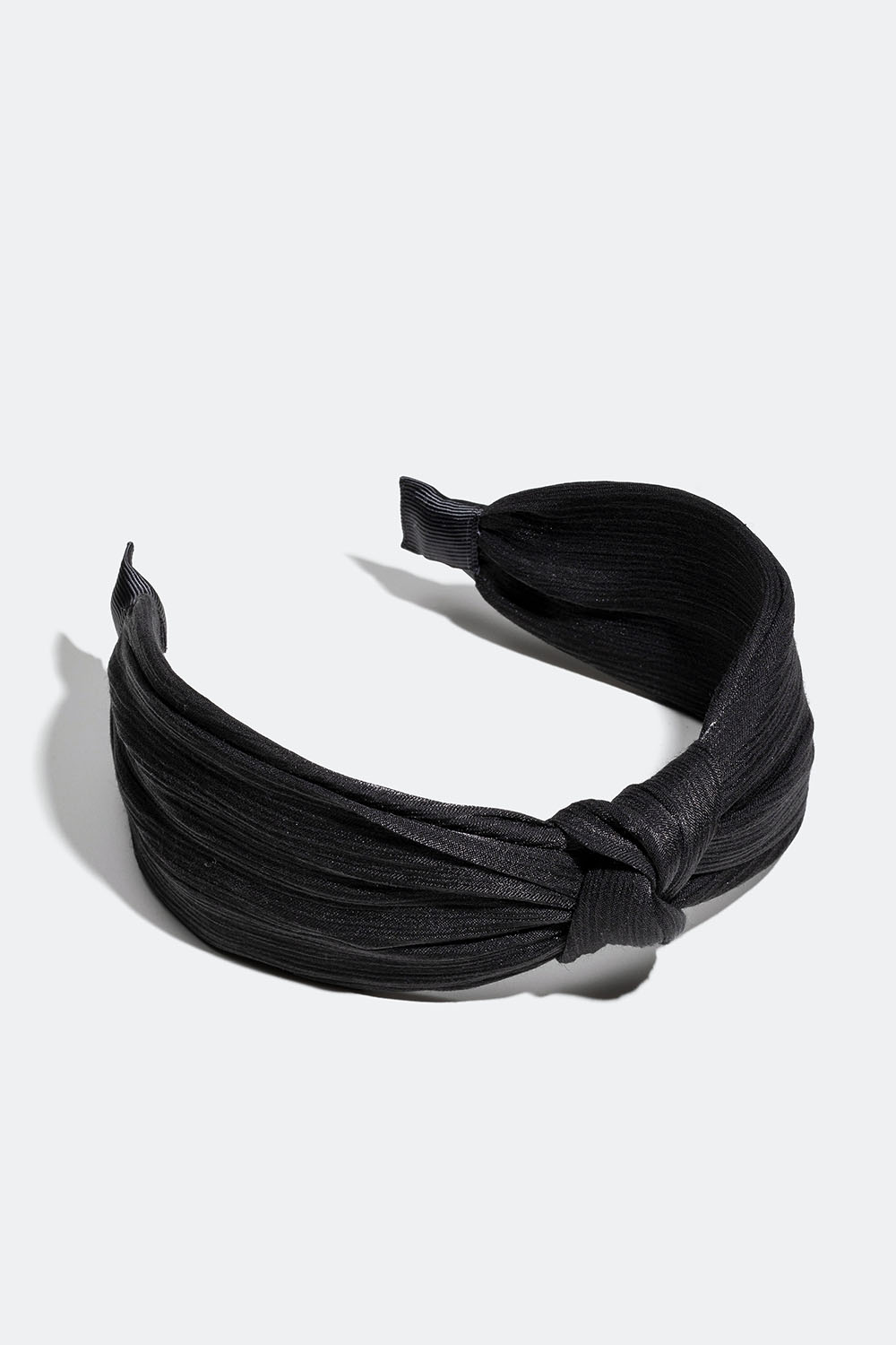 Svart diadem i sidenimitation i bred design med knut och skimrande ränder.