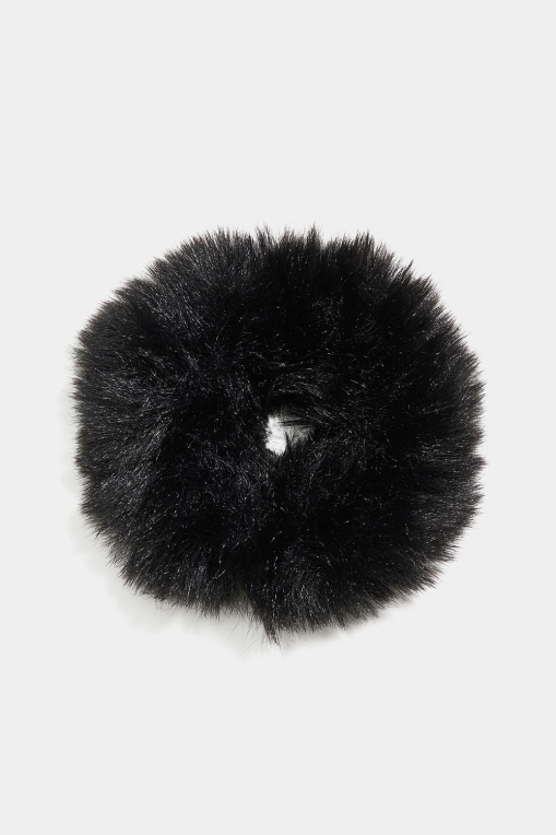 Mjuk och fluffig scrunchie i svart faux päls.